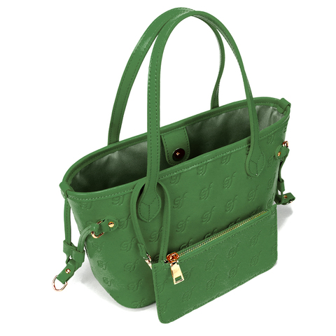 Bolso de mano de cuero verde impreso con logotipo personalizado OEM de alta calidad, bolso de mujer